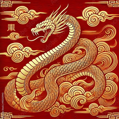 Fototapeta premium Chinese Zodiac Snake Sign - Year of the Snake - Cycle of Animals and Chinese Calendar - Asian Zodiac and Astrology - New Year Animal - Water, Earth, Wood, Metal and Fire