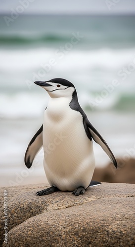 Naklejka premium Chinstrap Penguin on a Rock - A Portrait of Antarctic Wildlife.