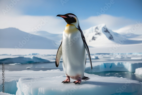 © Muhammad, Fototapeta premium Chinstrap penguin stands proudly on ice rock