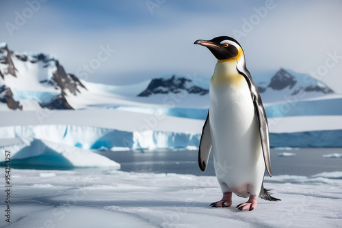 © Muhammad, Fototapeta premium Chinstrap penguin stands proudly on ice rock