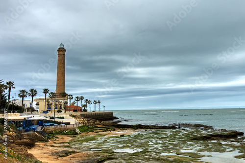 © juanorihuela, Fototapeta premium Chipiona beach, in the province of Cadiz, Spain, with the lighthouse in the background on a winter day