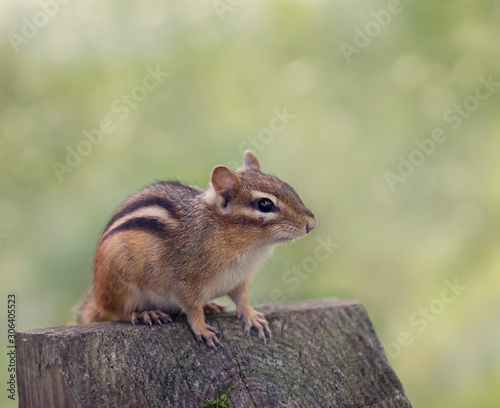© SunnyS, Obraz premium Chipmank perching on a wood