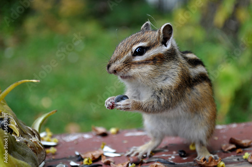 Obraz premium Бурундук (chipmunk) с семенем подсолнуха в лапках