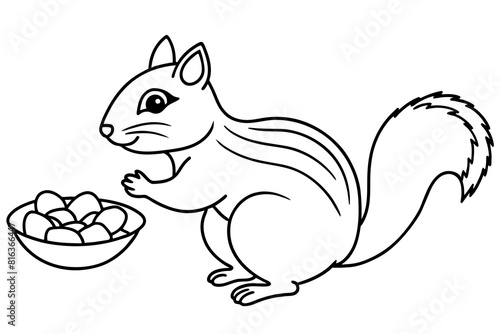 Fototapeta premium chipmunk eating nuts near nut platter vector silhouette illustration