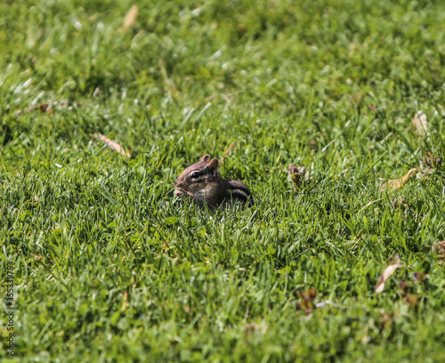 © Kayla, Obraz premium Chipmunk in the Grass Eating