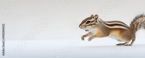 © kirania, Obraz premium Chipmunk mid leap captured against a stark white background