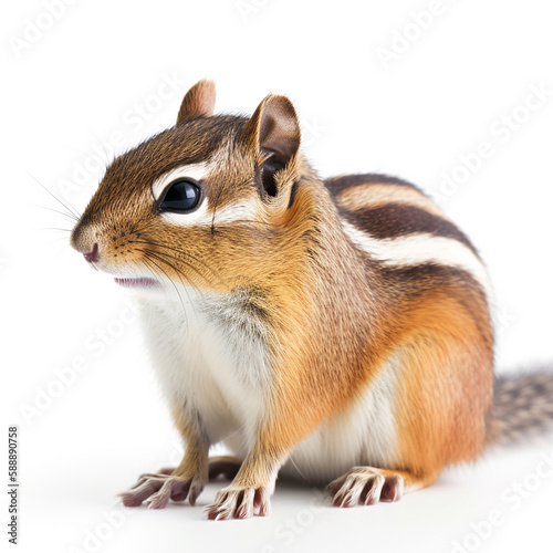 Fototapeta premium Chipmunk, wild striped rodent, cute animal, isolated on white background close-up, ai generative
