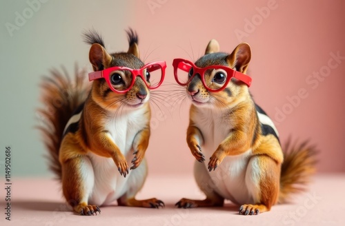 © Pavel, Fototapeta premium 2 chipmunks with glasses pose for valentines day