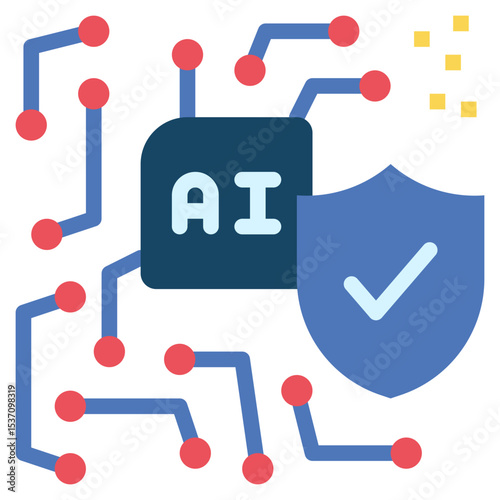 © nakedcm, Obraz premium chipset processing shield protection security ai flat style icon