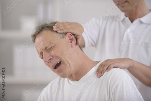 © mangostock, Obraz premium Chiropractic: Chiropractor doing neck adjustment