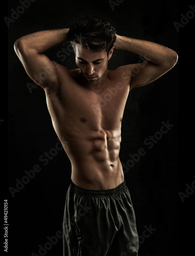 Fototapeta premium Chiseled abs. Muscular young man showing off his defined body.