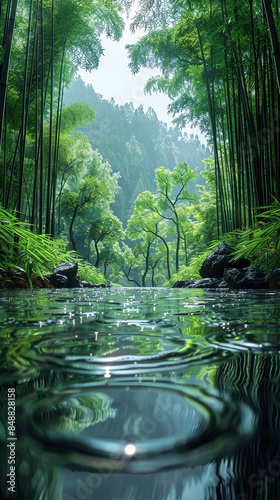 Obraz premium Chishui Bamboo Sea in China, Bamboo forest, stream water, The background is...