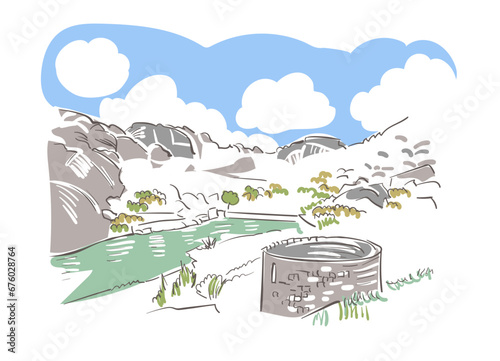 © CharlieNati, Fototapeta premium Chitradurga Fort Chitaldoorg Chitradurga District Karnataka India vector sketch city illustration line art sketch simple