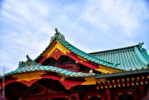 © zepkatana, Naklejka premium CHIYODA-KU, TOKYO / Japan - Apr.11, 2019 : Hall of worship in Kanda Shrine.