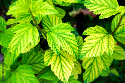 Fototapeta premium Chlorosis disease of raspberry