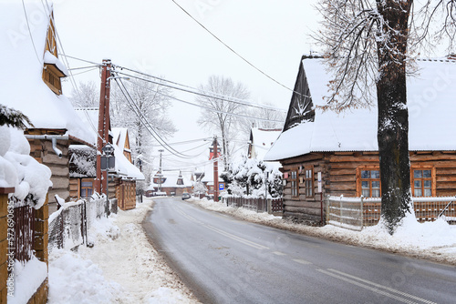 Obraz premium CHOCHOLOW, POLAND - FEBRUARY 09, 2023: Wooden architecture of Chocholow,...