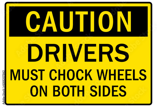 Fototapeta premium Chock wheel signs drivers must chock wheels on both sides