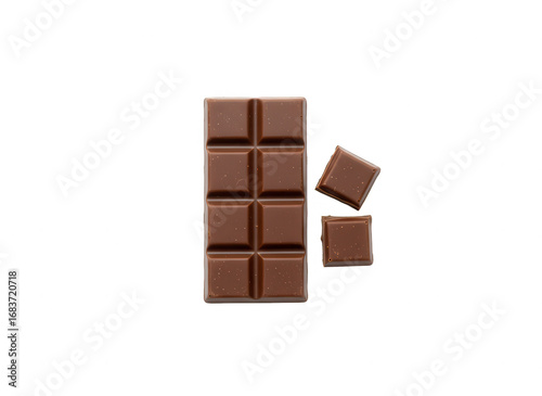 Fototapeta premium Chocolate Bar with Two Cubes on White Background