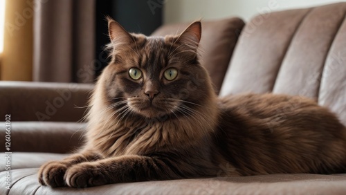 Obraz premium Chocolate british longhair cat lying on sofa at home