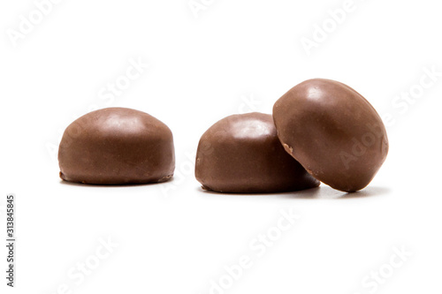 Fototapeta premium Chocolate candies with fillings isolated on a white background