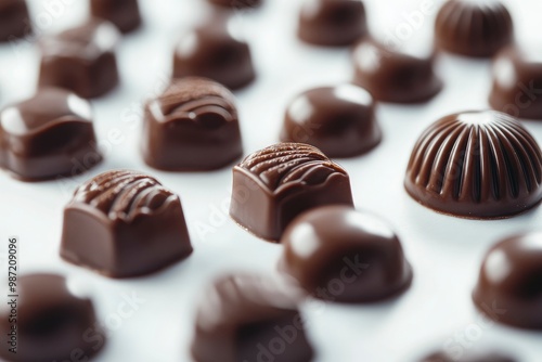 © Dzikrul Husnani, Fototapeta premium chocolate candy close up on a white , ai