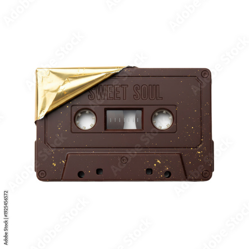 Obraz premium Chocolate cassette tape with gold foil wrapper