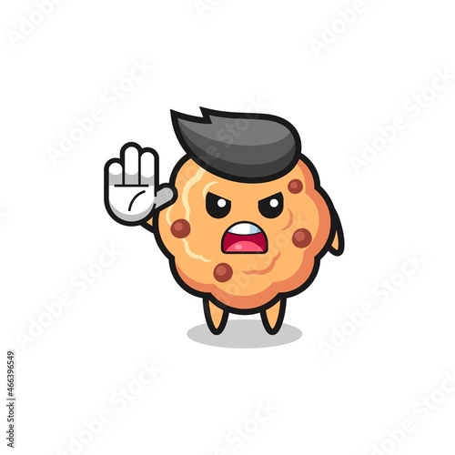 © heriyusuf, Obraz premium chocolate chip cookie character doing stop gesture