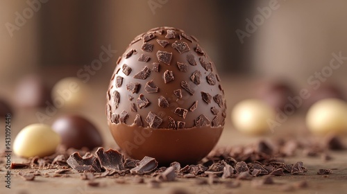 © TITISCAHYA, Obraz premium Chocolate Easter egg, studded with chocolate pieces