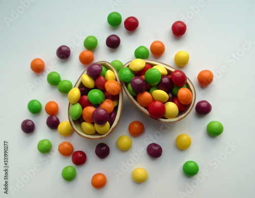Obraz premium Chocolate Easter eggs and candy on a white background