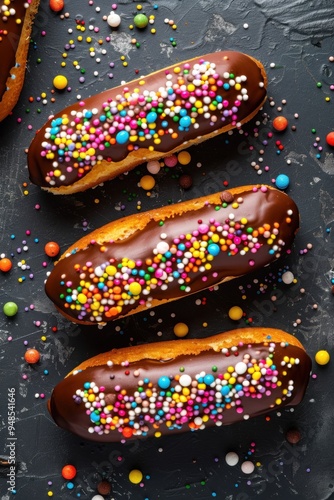 Obraz premium Chocolate Eclairs with Sprinkles.