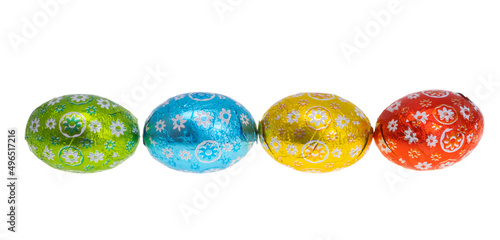 © ksena32, Fototapeta premium chocolate eggs in foil isolated