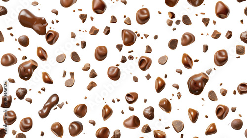 © Michael, Obraz premium Chocolate falling drops on white transparent background