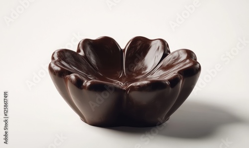 Obraz premium Chocolate flower-shaped bowl on white background; dessert, confectionery, studio shot