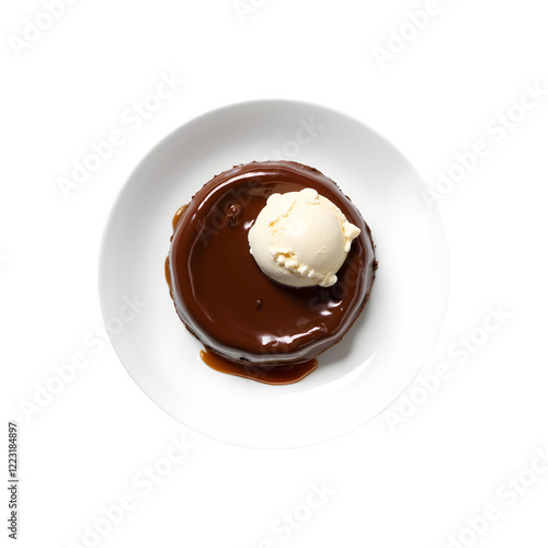 © Anastasiia Bublyk, Fototapeta premium Chocolate fondant with ice cream isolated on white plate on transparent background. Dessert