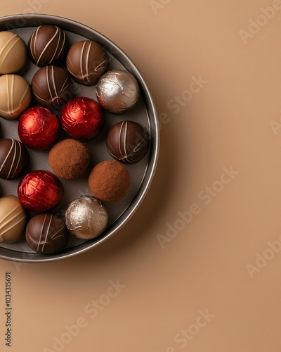 © Оля Ангельчева, Obraz premium chocolate gift box on brown background