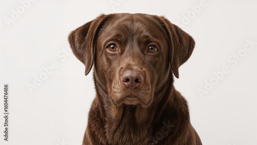 Fototapeta premium Chocolate Labrador Retriever Posed Against a White Backdrop