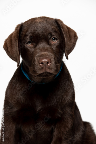 Fototapeta premium Chocolate Labrador Retriever puppy on a uniform background