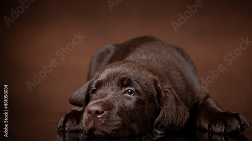 © Maxim Kukurund, Fototapeta premium chocolate labrador retriever puppy portrait.