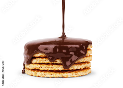 Fototapeta premium chocolate poured on Tasty waffles