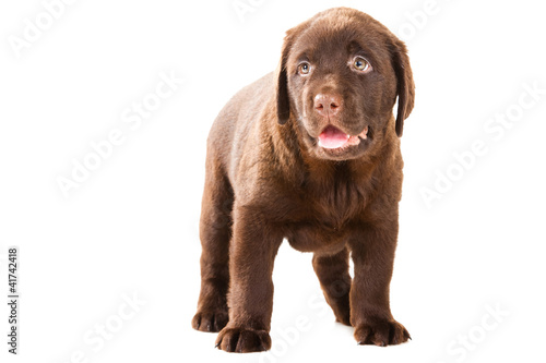 © oxilixo, Obraz premium Chocolate Retriever puppy on isolated white