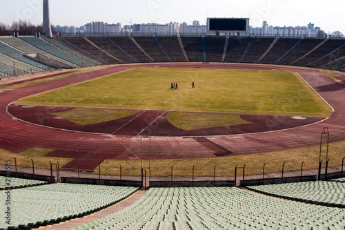 © Maslov Dmitry, Obraz premium chodzi po pustym stadionie