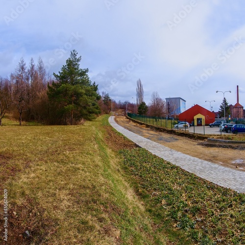 Fototapeta premium Chomutov, Czech republic - March 15, 2021: sunny spring street during...