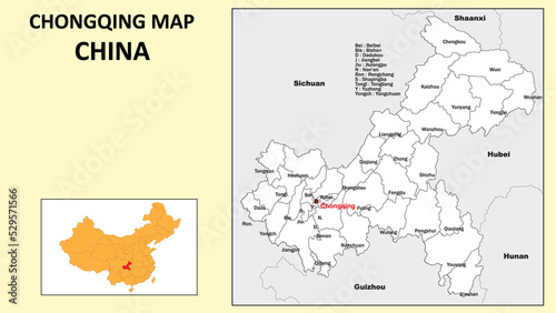 © awesome artt, Obraz premium Chongqing Map of China. State and district map of Chongqing. Administrative map of Chongqing with district and capital in white color.