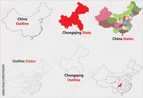 Fototapeta premium Chongqing map vector of China, Chongqing line map, Chongqing with city map,...