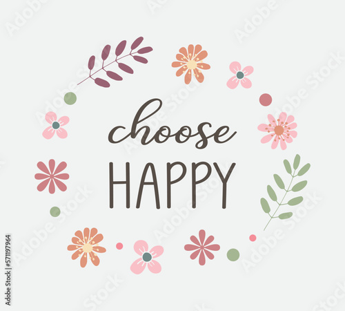© springsky, Naklejka premium Choose happy slogan with cute flowers, vector design for fashion, poster and card prints