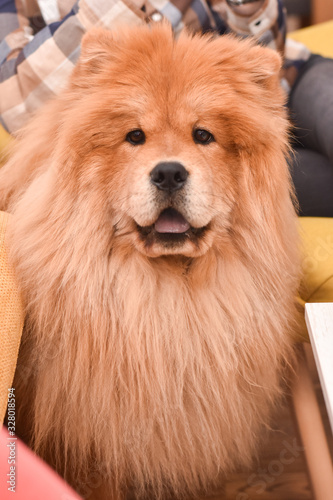 Fototapeta premium Chow chow dog. Beautiful purebred dog chow chow inside the house