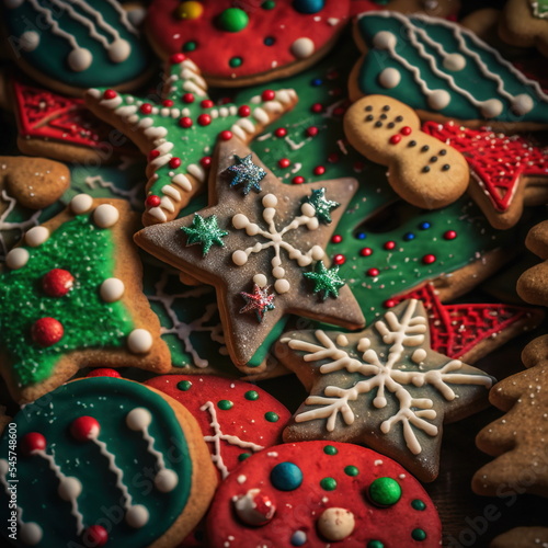 © Ecleposs, Obraz premium Chrismas cookies zoom shot with gingerbread and icing digital 3D illustration