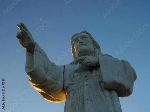 © Matthias, Fototapeta premium Christ statue (Cristo de La Misericordia) and the moon in San Juan del Sur, Nicaragua