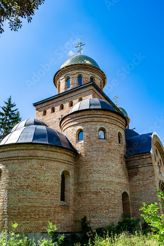 © Olegarx525, Fototapeta premium Christian church cross in high steeple tower for prayer