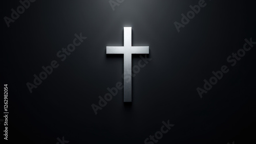 © Tameem, Fototapeta premium Christian cross in a dark setting with light highlighting its shape on the wall.